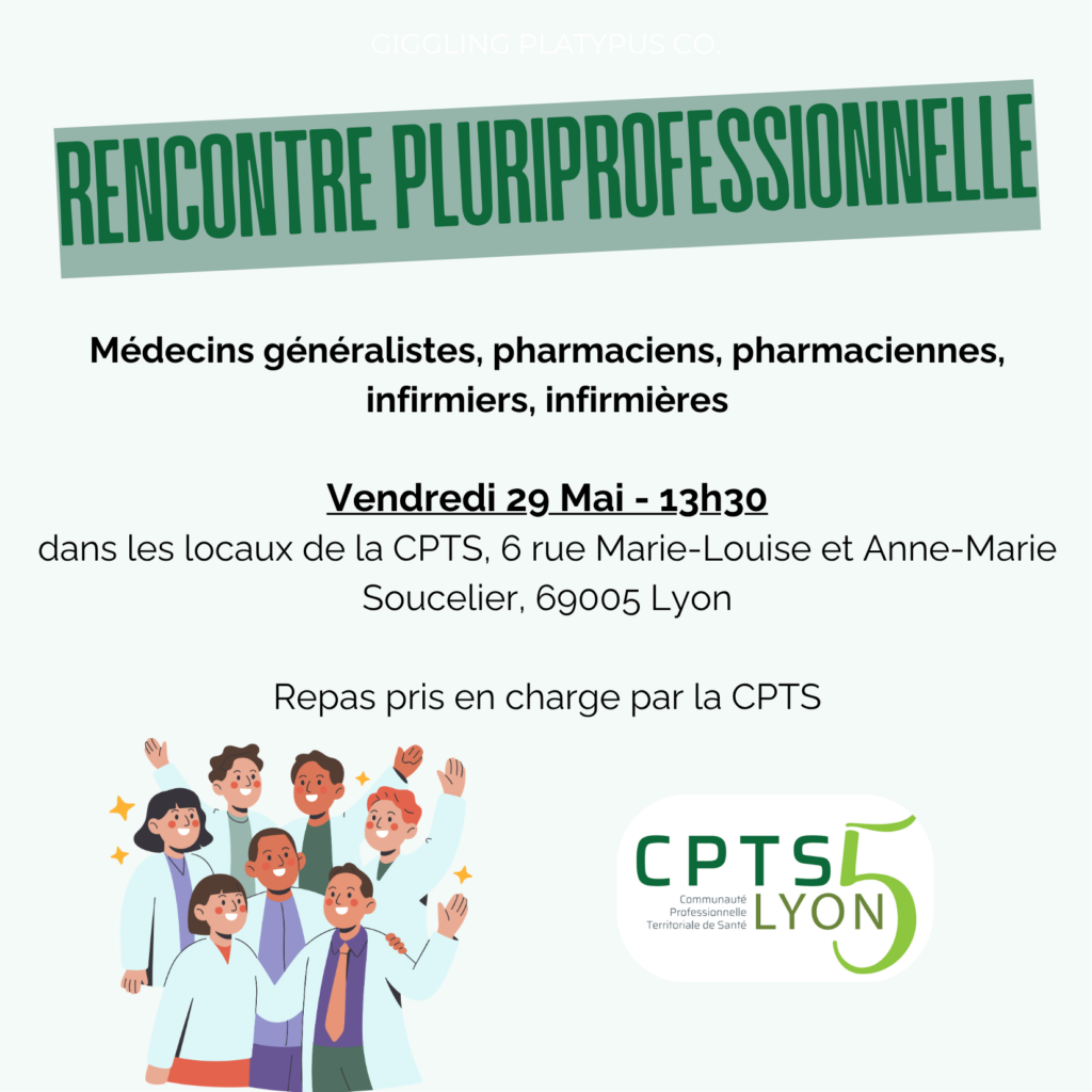Bonjour à toutes et à tous, La CPTS Lyon 5 organise une rencontre pluriprofessionnelle réunissant médecins généralistes, pharmaciennes, pharmaciens, infirmières…